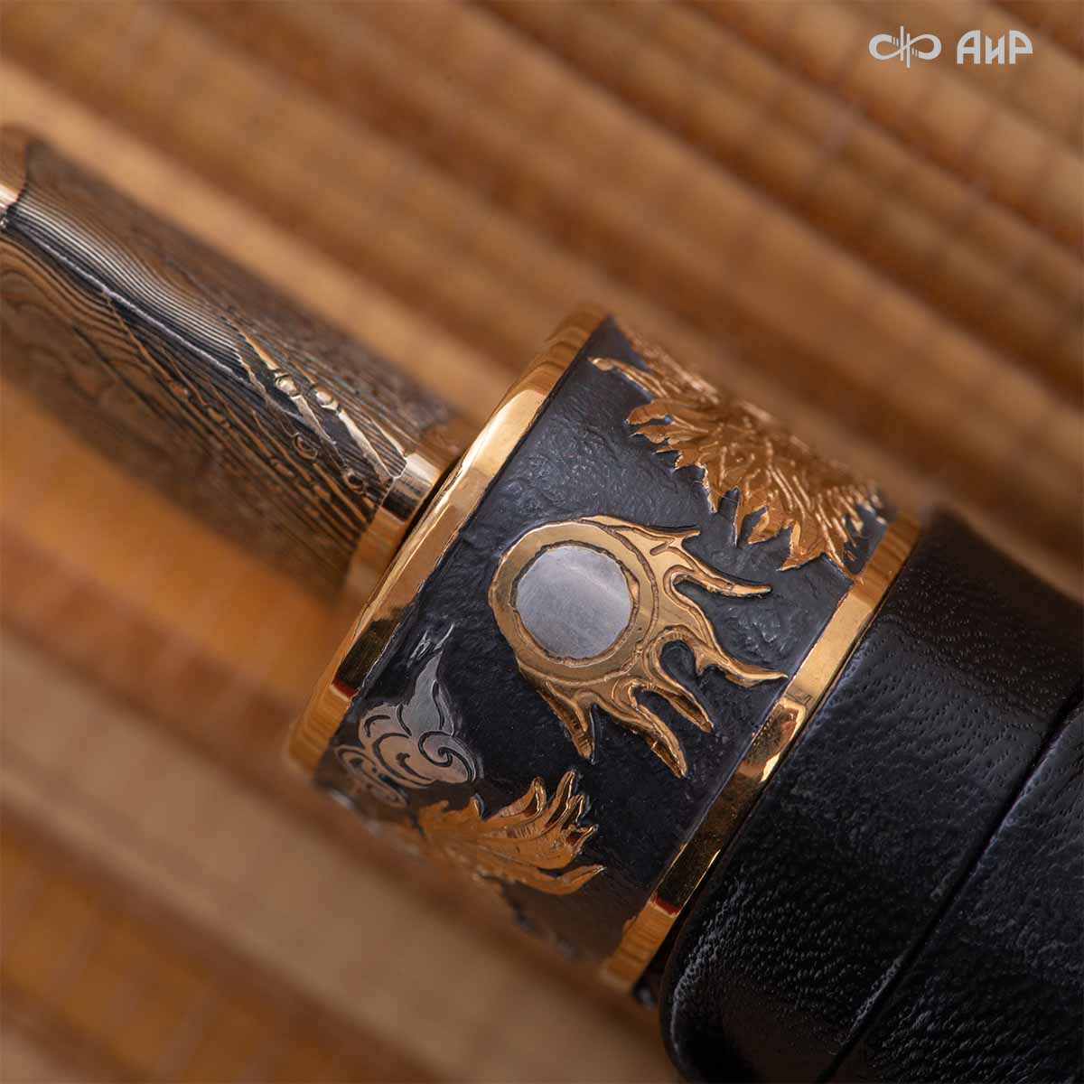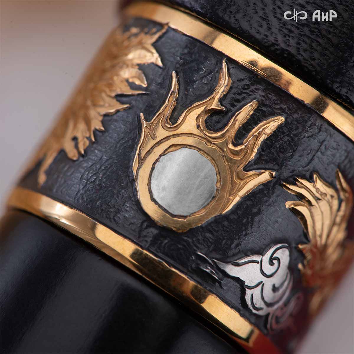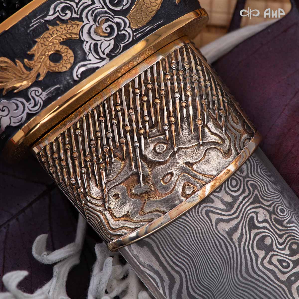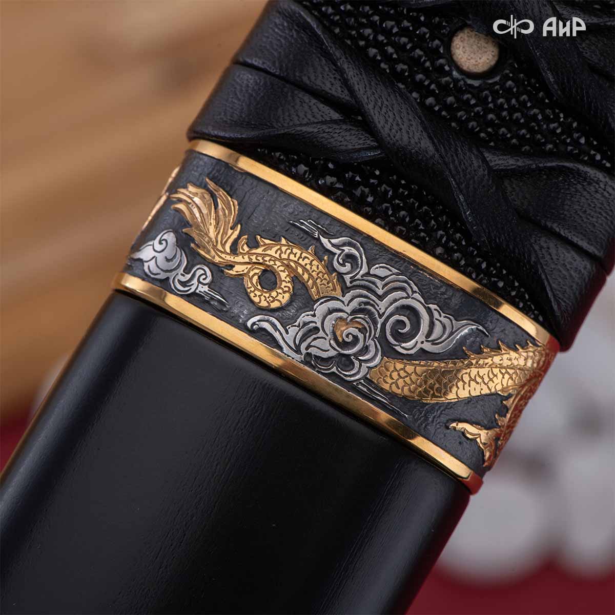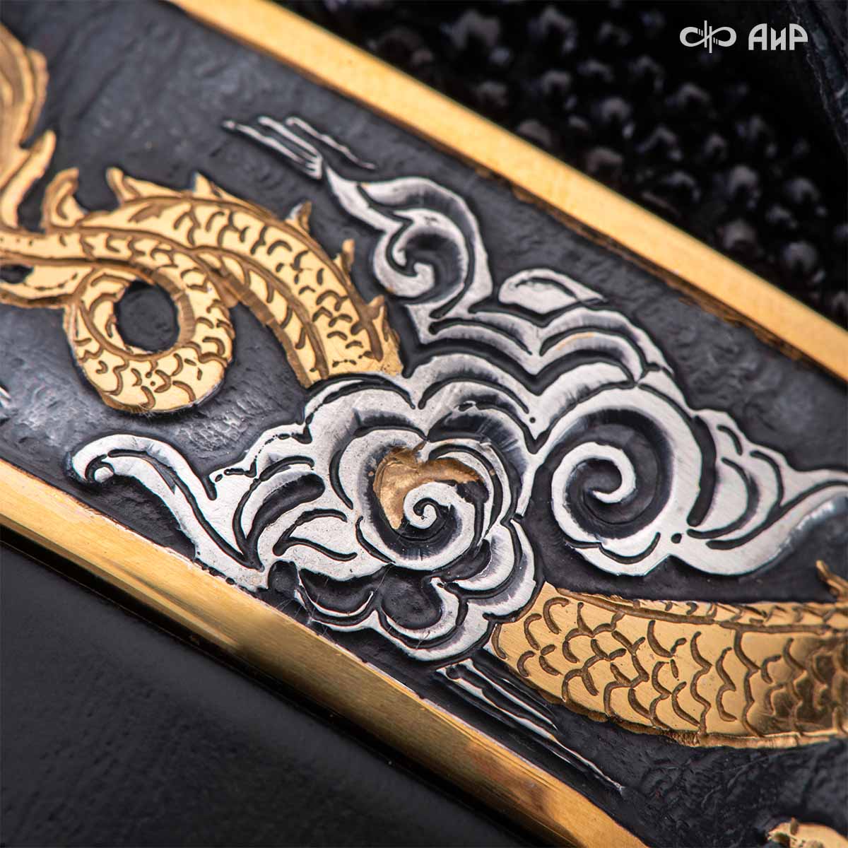 Танто "Небесный дракон" авторы посвятили известному символу японской культуры. Дракон – один из главных персонажей восточной культуры таких стран, как Китай, Япония и Корея. Жители этих стран относятся к драконам как к добрым божествам, главным героям национальных мифов и легенд. Благополучие, доброта, ум, энергия – все это в восточной мифологии связано с драконами. Ryū ( 竜 или 龍 ) - существо из японского фольклора и мифологии. Японский дракон обладает тремя пальцами на каждой лапе, что отличает его от других драконов восточной мифологии. Другое название Tatsu. У японцев дракон олицетворяет могучие божественные силы, которые могут нести как добро, так и зло. Если к дракону относиться с должным почтением и уважением, то он может щедро отблагодарить человека, потому что драконы сказочно богаты.