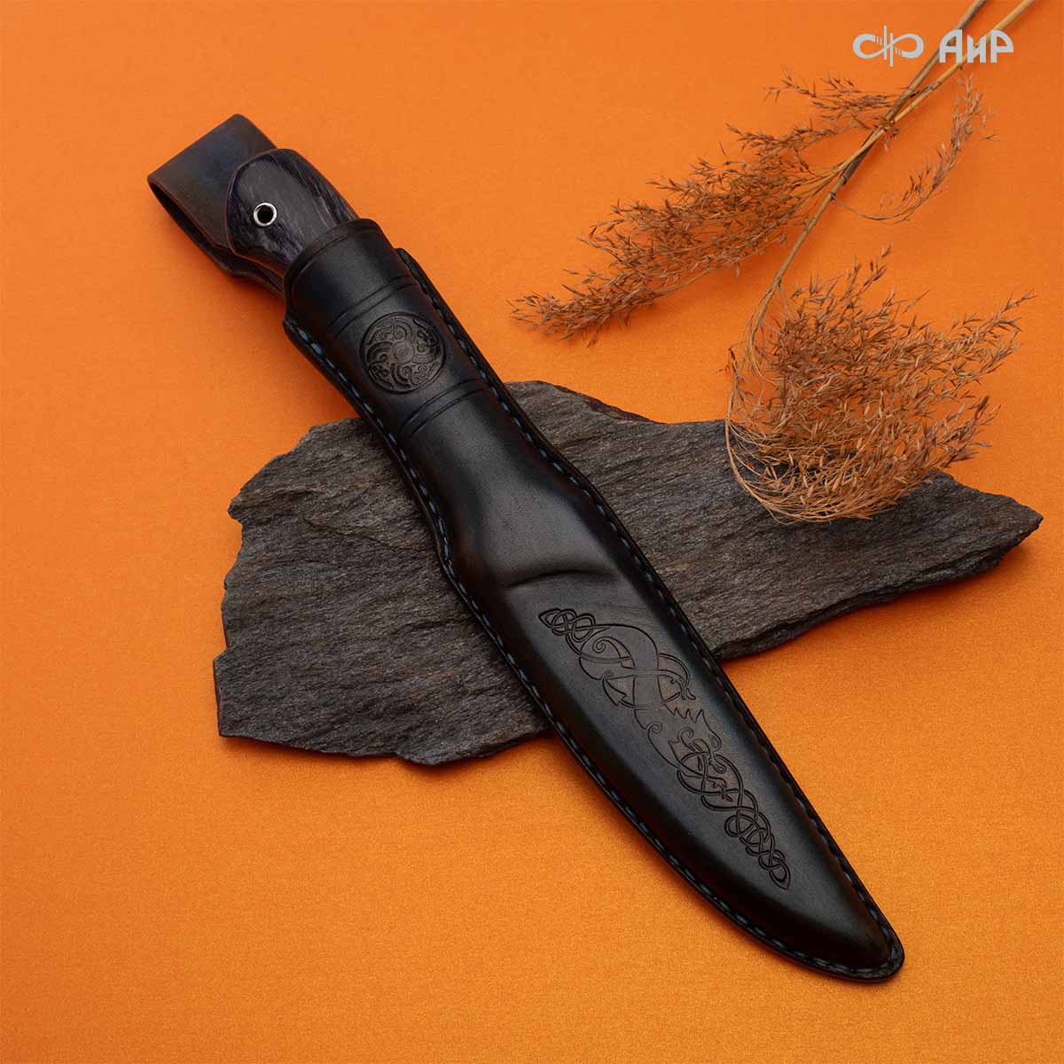 Нож Финка-5, стабилизированная карельская береза фиолетовая, стабилизированный граб, авторские ножны, Артикул: 38883